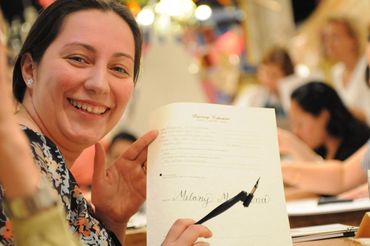 As an instructor, introducing someone to a new art form, especially one as tedious as calligraphy, must be done in a way that encourages and delights vs. discourages and confuses. Lessons should be thorough, challenging and detailed, but also must be enjoyable, positive and enthusiastic. I strive to offer the kind of introduction to calligraphy that will make a wonderful impression and to help you believe in yourself! It is not easy to learn, but it is incredibly satisfying and fulfilling with the right attitude and determination.